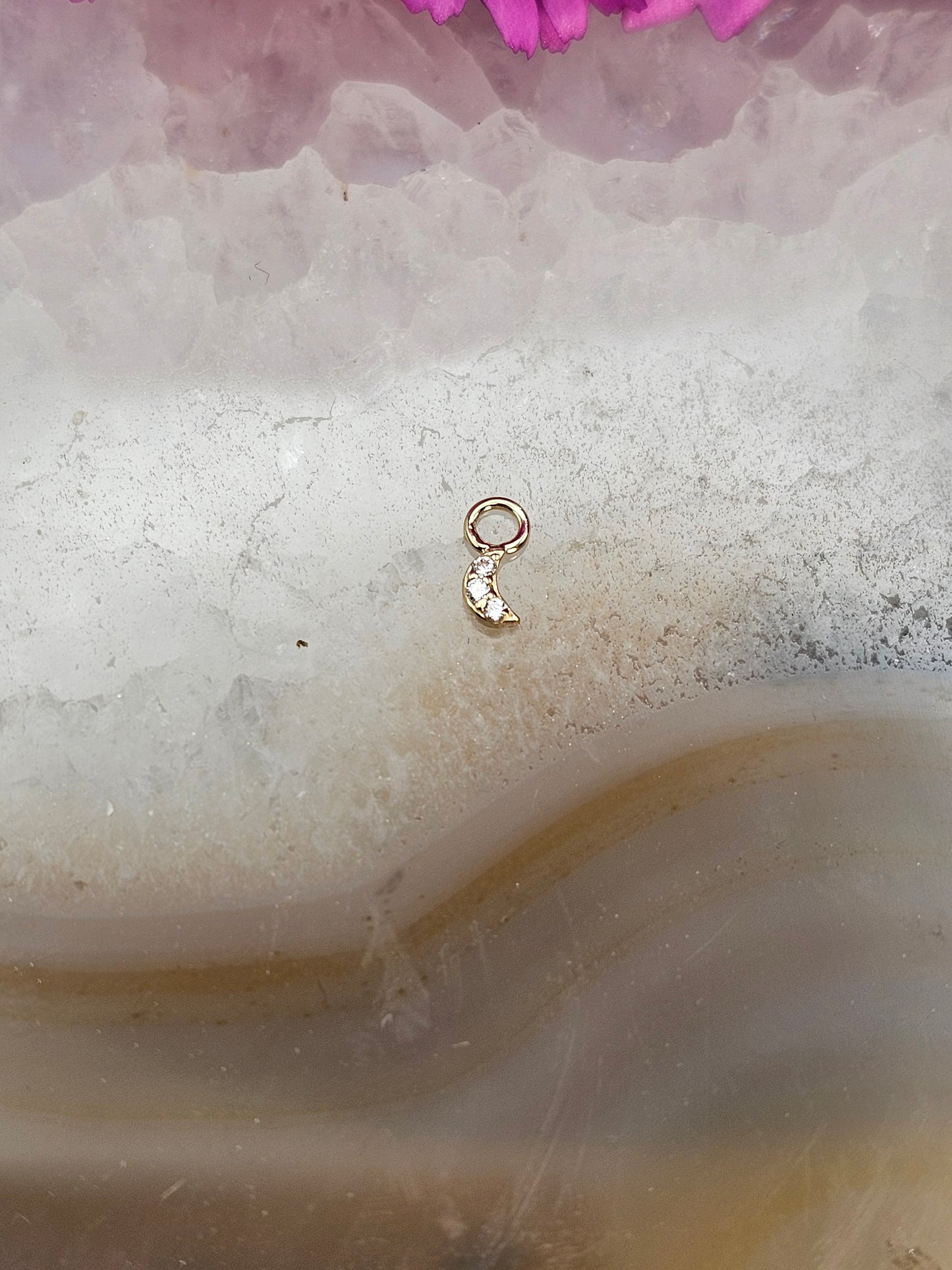 Kiwi Diamond yellow gold Pave Moon charm with cubic zirconia