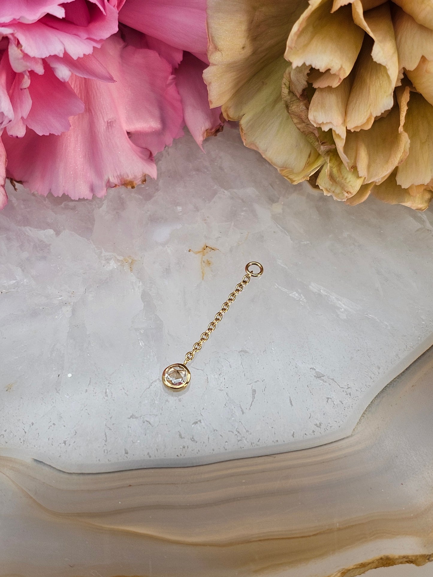 Tether yellow gold Niko chain charm with white topaz