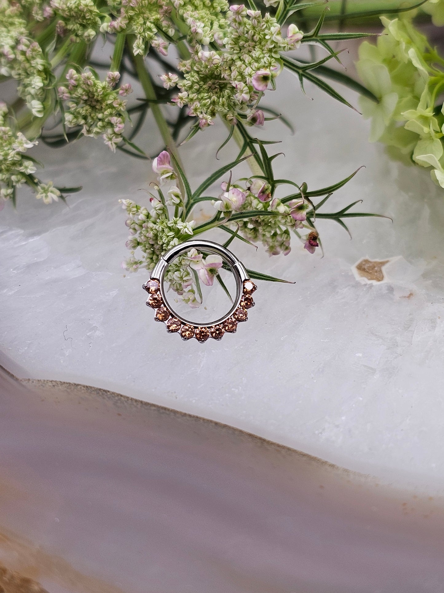 Infinite Body Jewelry titanium Jasper hinge ring 16g 5/16" w/ champagne